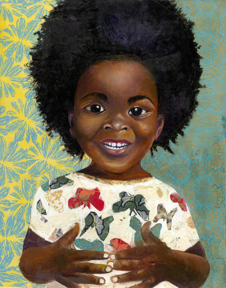 This limited edition print captures the beauty and innocent of black boy joy. The child in this painting has on his favorite shirt which is adorned with butterflies. Children remind us time and again that it's the small things that ultimately matter. Happiness is a state of mind.